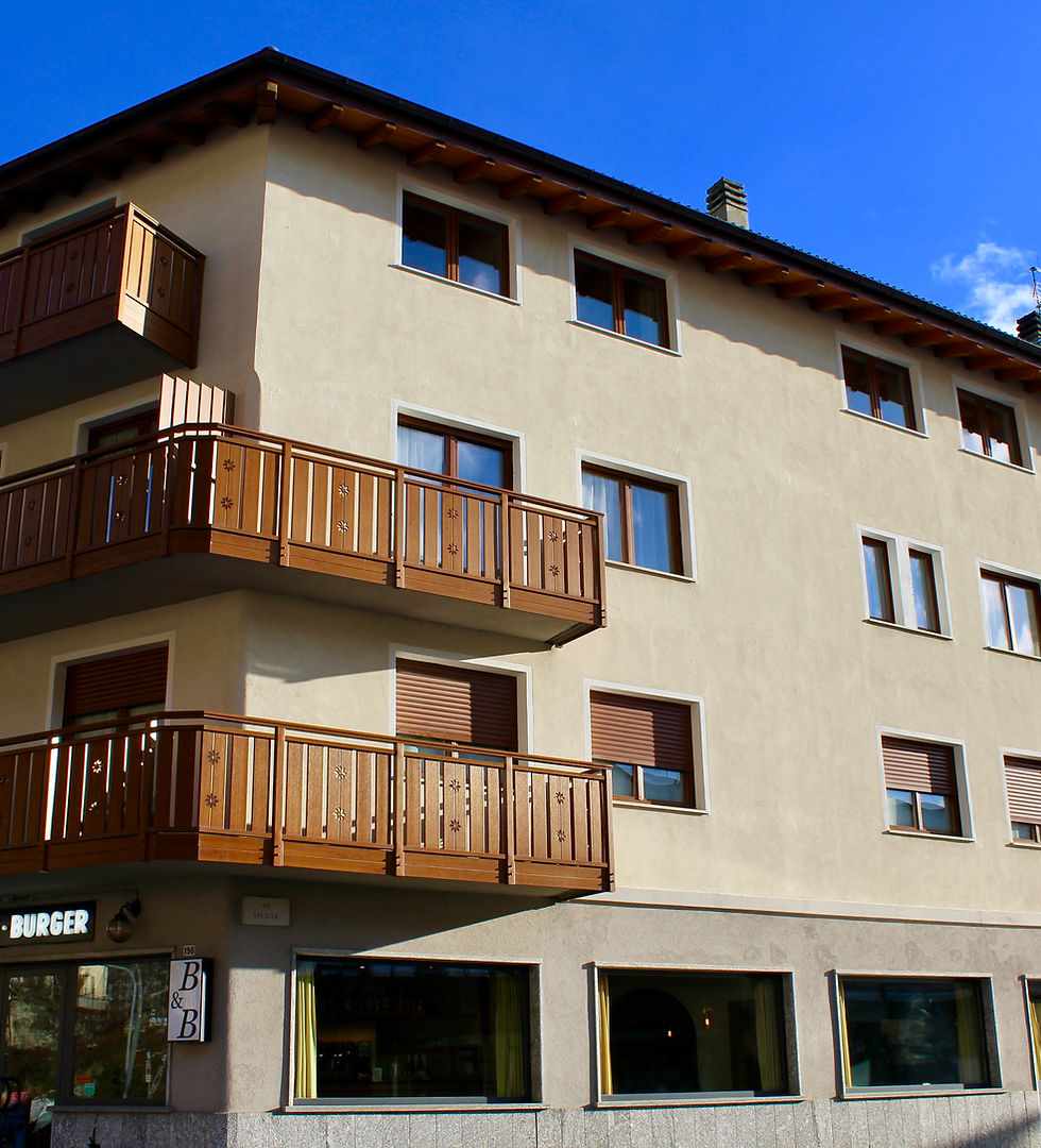 Located in the village of Aprica, in the region of Lombardy in Northern Italy, our newly reconstructed bed & breakfast is just steps away from the pistes and right in the centre of town. The house, which was constructed in 1961, has been completely refurbished to transform it into an ecological house which not only has zero energy consumption but produces surplus energy by using solar heating and photovoltaic panels on the roof. Our breakfast room has mountain views to wake up to whilst you sip your cappuccino and is attached to our gourmet burger restaurant and wine bar which is run by the fourth generation of the Ricetti family who were commercial pioneers in Aprica, trading since 1908 (with the nickname Penak!).