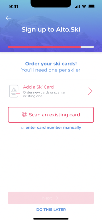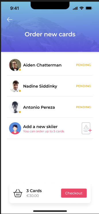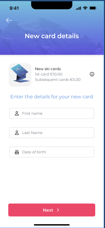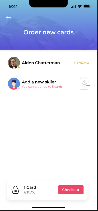 ❄️ Aggiungi le nuove ski cards (massimo 5) che verranno poi collegate al suo conto per l’addebito a fine giornata.