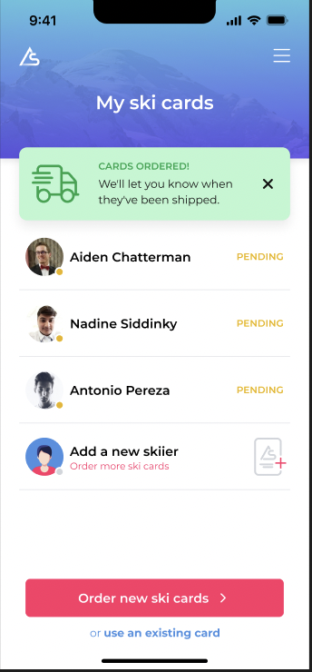 ❄️ Aggiungere o ordinare le nuove ski cards. Premere sul bottone (Ordina le nuove ski cards) per procedere, oppure ordina le ski cards in un secondo tempo: