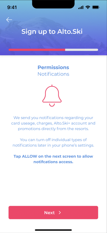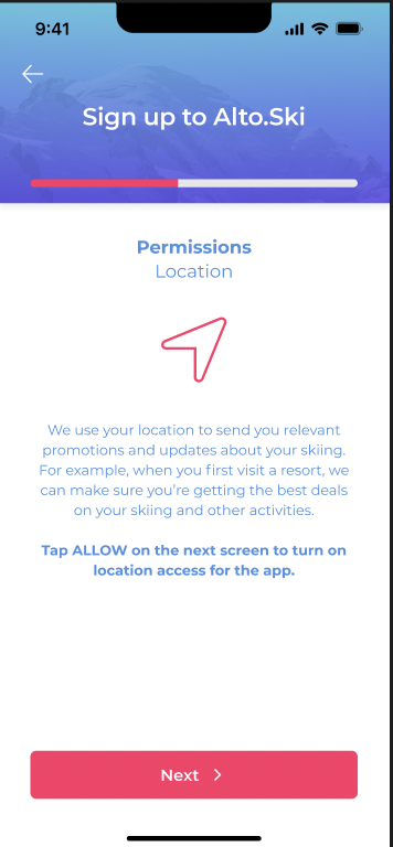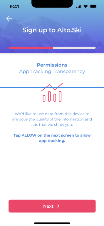 ⛄️ Autorizzare la funzione IDFA (identifier for Advertisers) per poter tracciare la sua attività e farle vedere il contenuti che possono interessale sulla base delle sue attività e montagne selezionate: